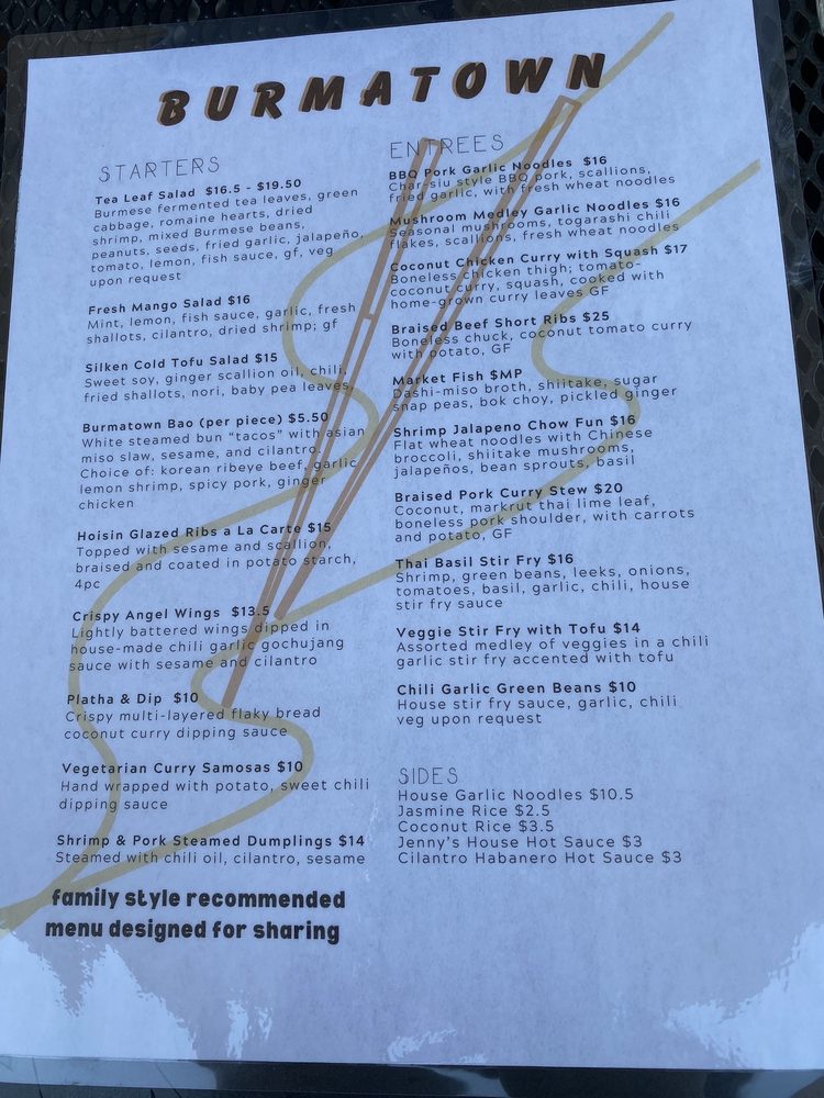 Welcome to Burmatown, a vibrant Asian Fusion eatery located in Corte Madera, CA. This beloved brand masterfully blends traditional Burmese flavors with contemporary culinary techniques, creating a menu that caters to diverse palates. Offering a delightful array of vegan and vegetarian options, Burmatown ensures everyone finds something to savor.